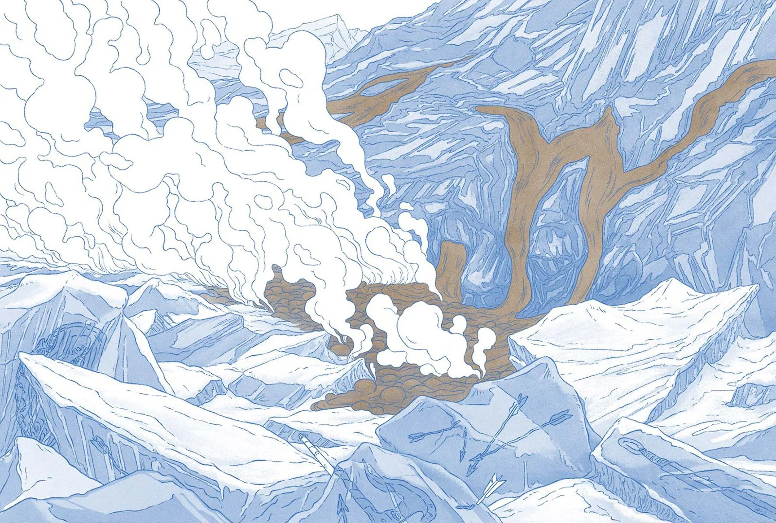 Sublimation is a transition of a substance from solid to gas. Like when ice meets lava.